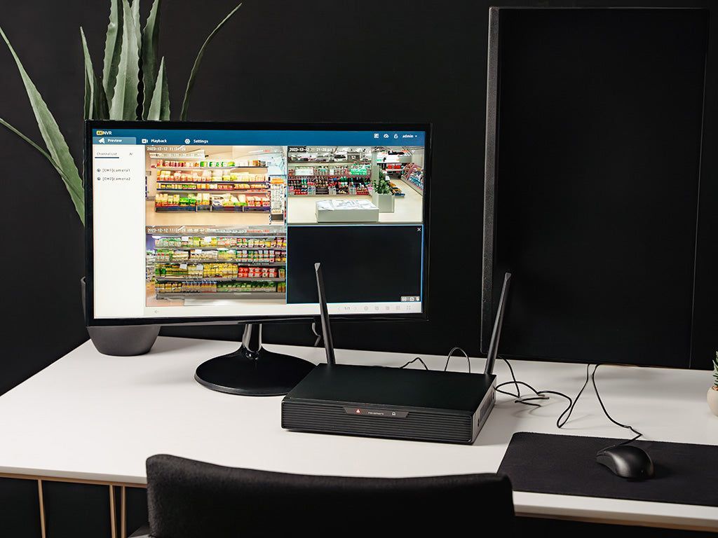 Ons NEXSMART™ WIFI NVR KIT wordt geleverd in een handig verpakte doos, klaar om u naar de installatieplaats te begeleiden. Binnenin vindt u alles wat u nodig heeft voor een soepele en eenvoudige installatie. Sluit eenvoudig stroom aan op alle apparaten, en u bent slechts enkele minuten verwijderd van een volledig operationeel systeem.